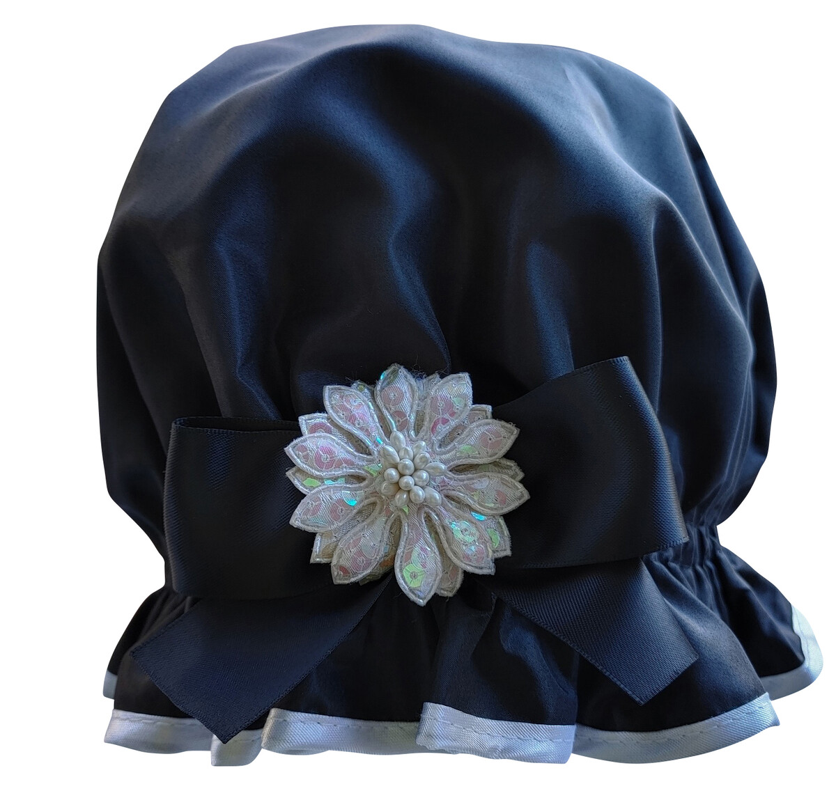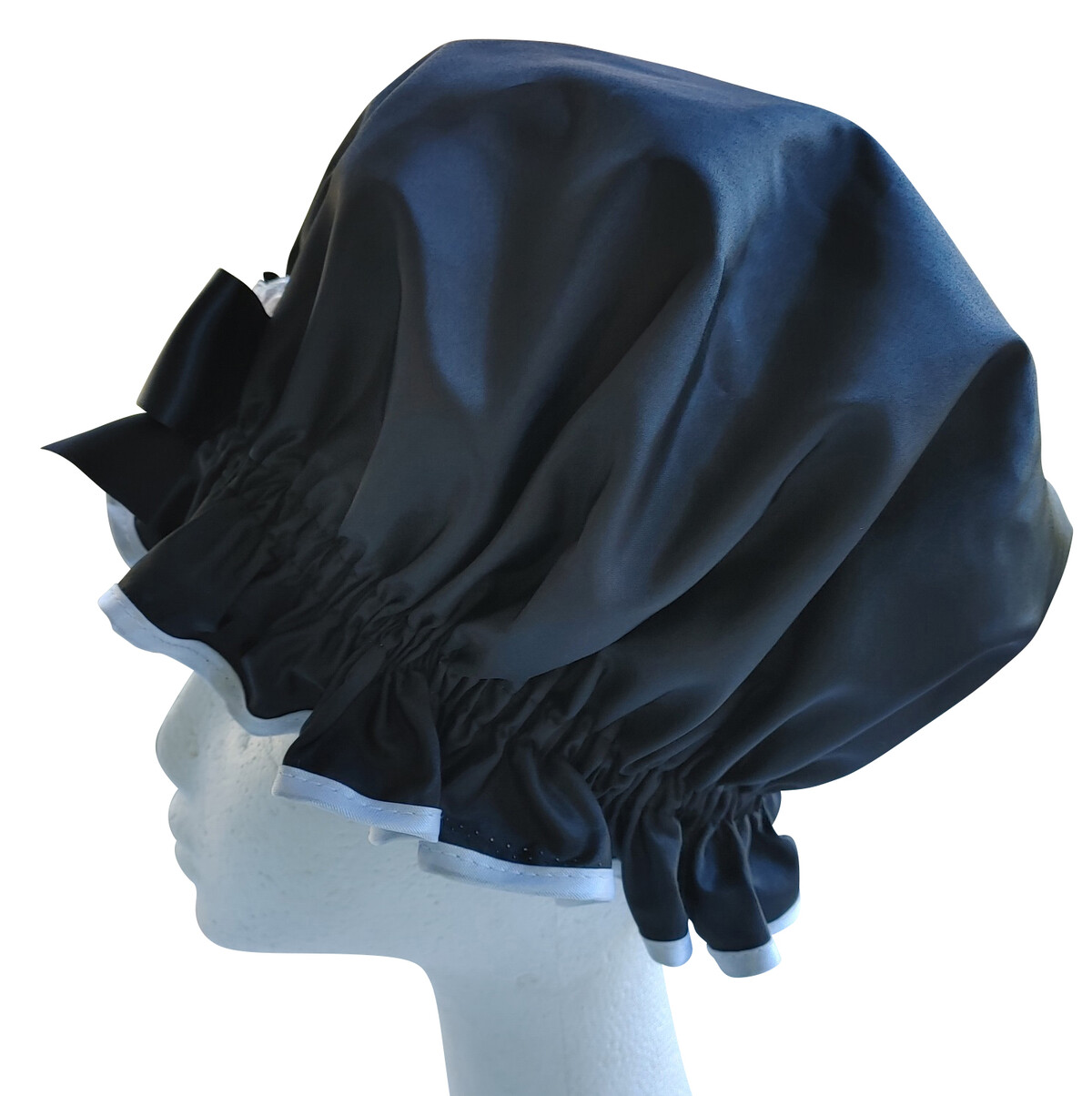 Here are three options of the Pizazz by So Pretty Shower Caps that are sure to be leaving you procrastinating over choice! So Pretty has created three similar but different Big Bow designs in Black shower caps here. There are White, Pink or Red combinations available. All are practical and perfect Ladies shower caps and all have the Pizazz of being attractive and stylish with a dash of glamour thrown in for good measure! The Black Satin ribbon used is of extra width from which a double bow is created and combined with a larger than usual sequinned flower trim. The edging is quality Satin in each respective colour. All this creates the flair that is the Big Bow Pizazz shower cap! This Big Bow trio could possibly be a great set to gift for a girls get together, especially if there were three of you so no doubling up! Else if there are three ladies or teenagers in the household, this is a perfect way to have three slightly different shower caps which can be individually identified for each lucky lady! Whoever is the more flamboyant personality can fight for the Red Pizazz shower cap! You may have to toss a coin for the allocation process unless their personalities make it easy to distribute according to the White, Pink or Red Pizazz shower caps. In any case as you can see there are so many options for shower caps here at So Pretty, you are probably overwhelmed for making a selection.