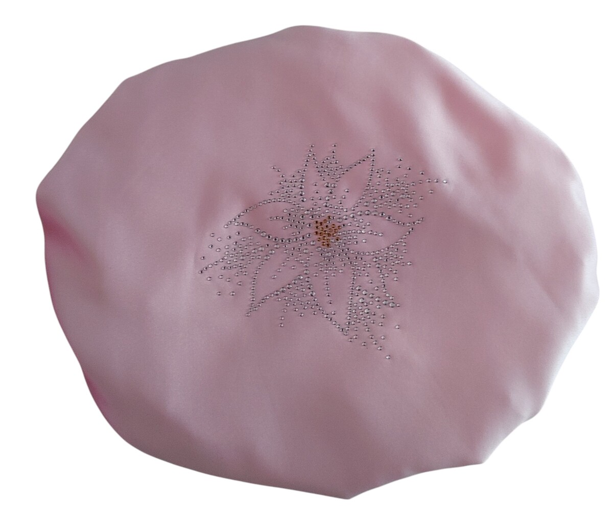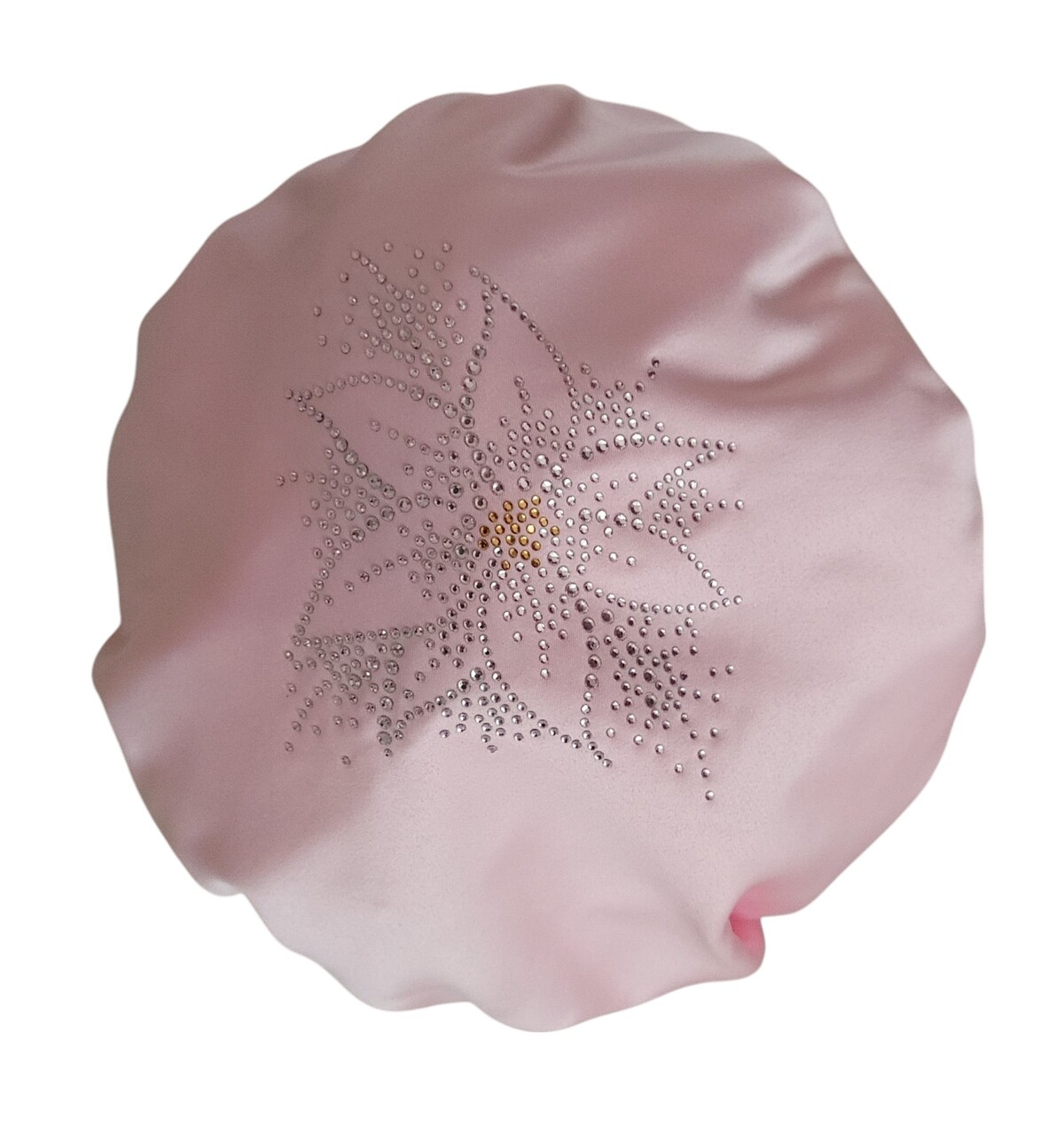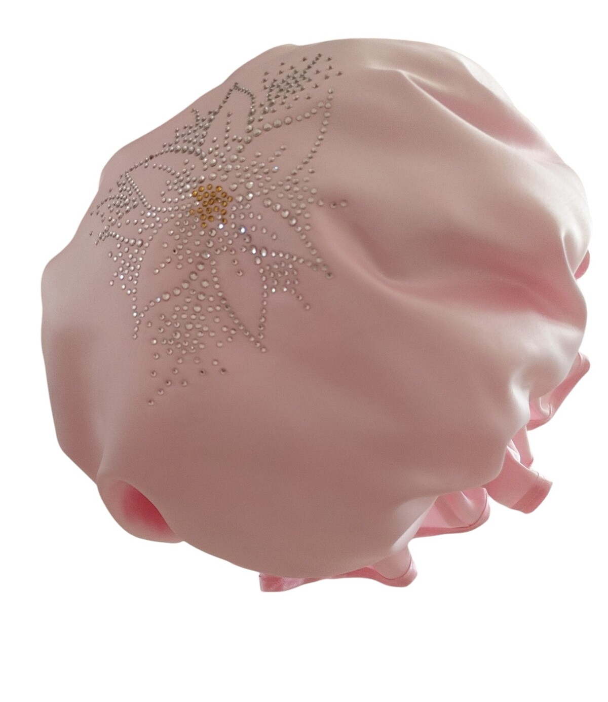 Now this is a special and very feminine pastel Pink shower cap by So Pretty! A light Pink Satin decorated with a large diamante flower. Is definitely a gorgeous design that would look amazing as well as add a sparkling impact in your bathroom. Of course use it as a shower cap and it will serve you well as all So Pretty shower caps do, but this one will look stunning just hanging around waiting to be used....