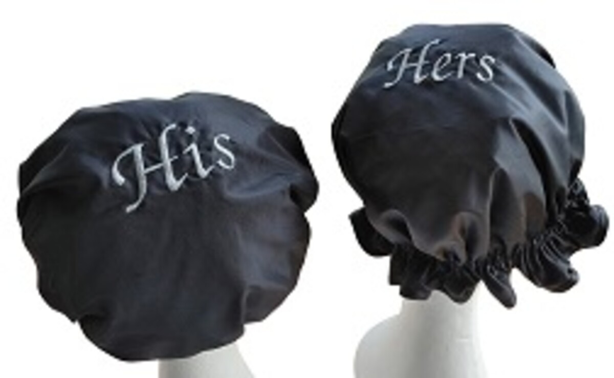 A So Pretty His n Hers Embroidered set of shower caps would be a practical and thoughtful gift idea for a couple either as an Engagement gift, housewarming, or even for their respective Bucks and Hens night prior to their Wedding Day. A Wedding gift option is not such a bad idea either, would save potential arguments over using her shower cap perhaps! Bath towels are often embroidered in the same way, so for a complete gift package, embroidered towels can be combined with this So Pretty His n Hers set of shower caps!