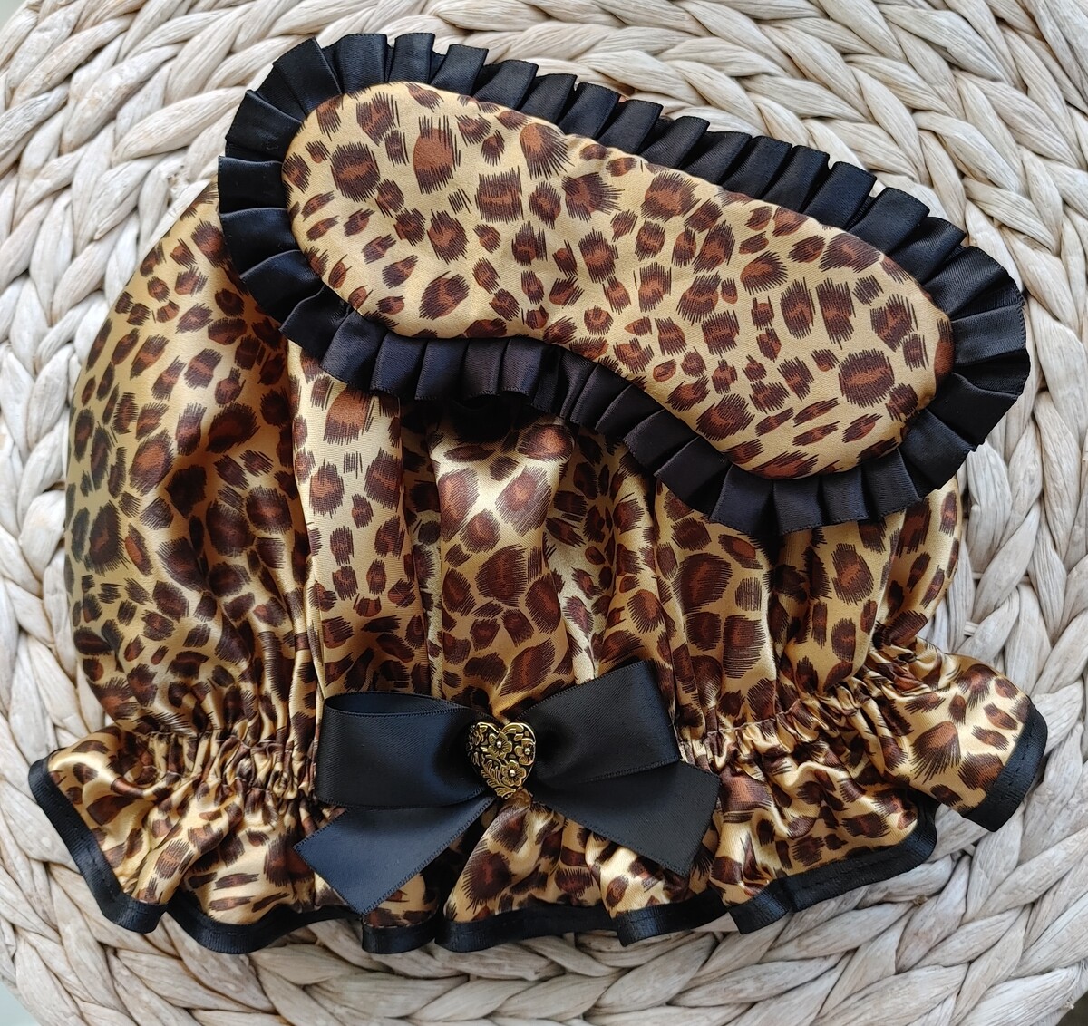 This Wild Cat satin print has been a staple in the So Pretty range since 2002 when So Pretty became a thing! Leopard Print has always been a fashion favourite for decades so it was a no brainer to have a range of hair accessories and sleep masks in this pattern! So this combination of a Ladies Wild Cat shower cap and Sleep Mask would be a classic look for the lady of the house both at shower and beauty sleep time! Would also be a wonderful gifting idea of course, something to suit a variety of ages and a fun yet practical gift idea as well. These days sending a gift by mail can be quite an expense, but with this set that expense would be at a minimum. Purchasing as a combo saves you some dollars as well. Just about every item So Pretty offers comes in this Leopard print, for example Mens Shower Cap, XL Ladies Shower Cap and Sleep Bonnet in standard and XL sizes. So Pretty has a His n Hers section if this appeals more than this combination.