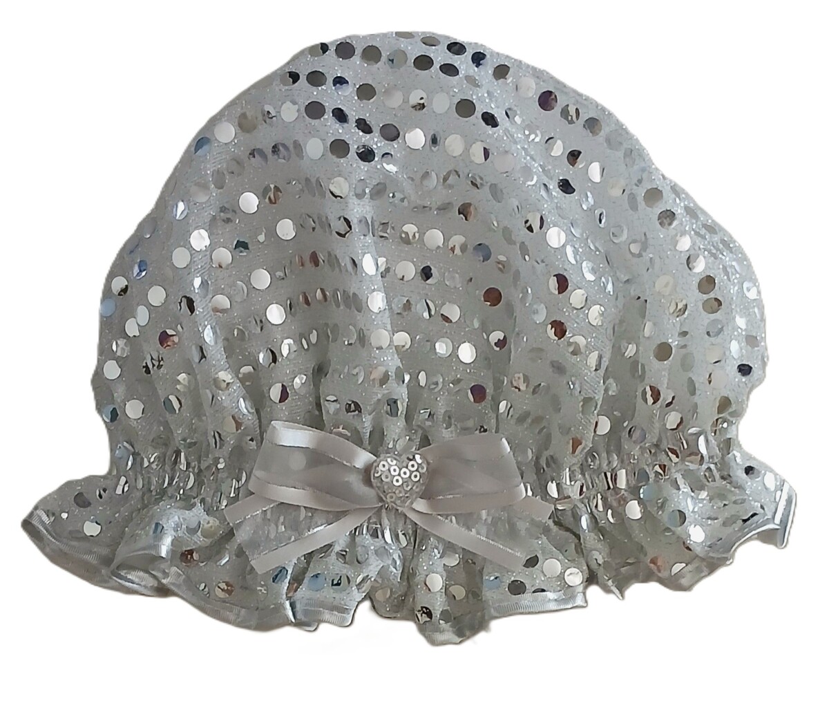 A So Pretty shower cap is an excellent and practical idea as a birthday gift whether it be for the endless party events or for a daughter/grandchild gift.  Be warned they are often used for dress ups too, even more so with a sequinned design such as this one!  Another gifting idea is creating a matching set for Mother and daughter, as this Silver Sequin design is available in the larger Ladies size.  Saves sharing a wet shower cap too of course!