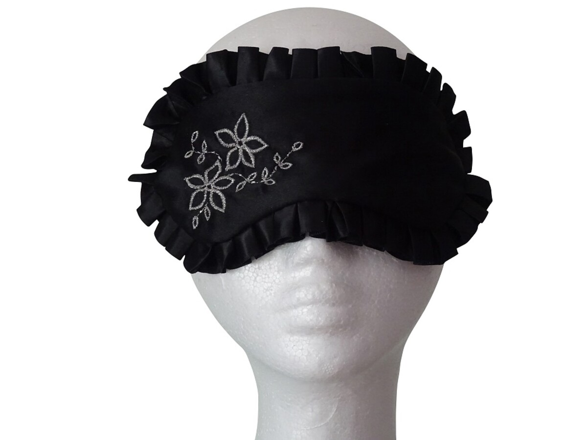 This is such a classy and elegant Sleep Mask by So Pretty! . Getting your beauty sleep has never looked so good! No need to put up with cheap and ugly sleep masks with a flimsy excuse for elastic any more. A So Pretty Sleep mask is hand made quality and uses excellent and wider elastic for the head band for a comfortable fit. A glittery silver thread is used to embroider the floral design on this Black sleep mask. The reverse side is Black as well with two layers of soft inner lining in between. The embroidered Black Sleep Mask is a delightful accessory as a stand alone item. If you are looking for a gift option where you know the recipient uses a Sleep Mask, then it would tick a lot of boxes. Should you be thinking of matching up with a So Pretty Shower Cap for a real pamper treat, then there are several Black or Silver Shower caps that would create a fabulous combination set. In particular "Black Diamond" is ideal as it is a shimmery Black with Silver edging and a Silver Organza Ribbon bow. With one or both items you would be giving a gift of difference, being totally hand made, and hand made quality. Proudly Australian made too, so if you are local and supporting an Aussie business, thankyou! If you are international, then a little bit of Aussie style will be coming your way (and thankyou as well!)