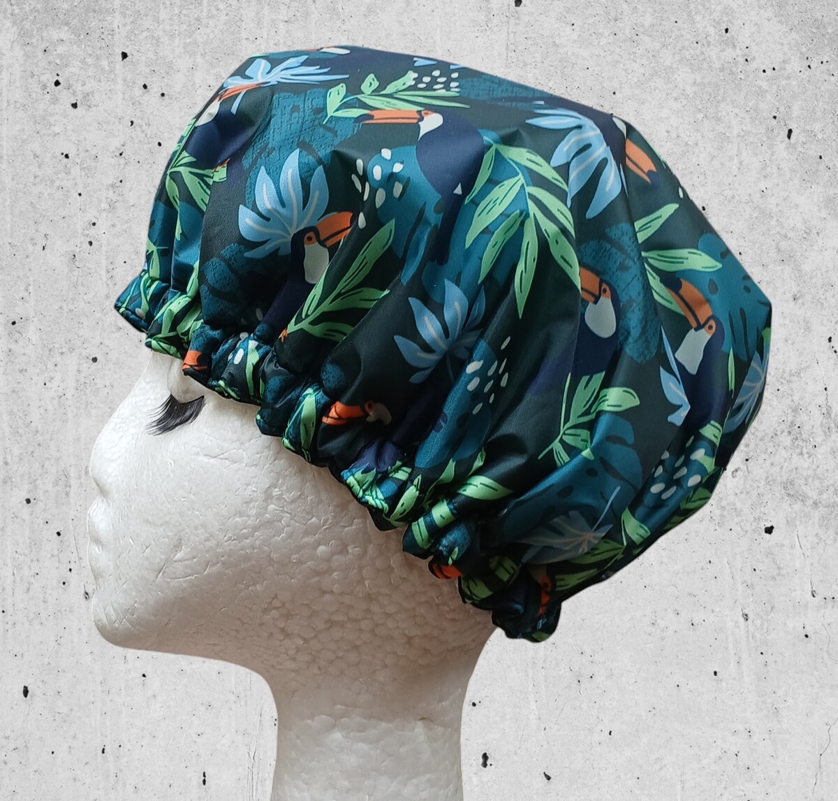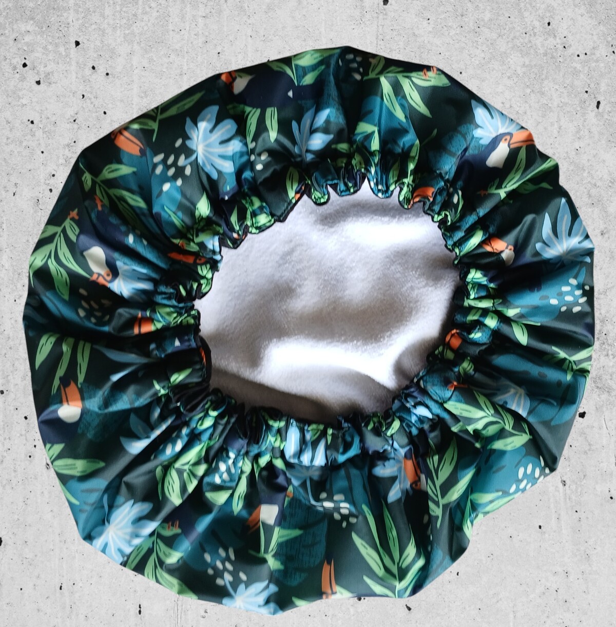 No matter what the reason is, the So Pretty Toucan is a quality hand made shower cap that is suitable for most users hair length wise. The outer fabric is laminated which makes it totally waterproof. Isnt that an excellent way to keep your tresses dry at shower time! Inside is a soft Microfibre towelling lining which overall creates a beautiful and luxury shower cap by So Pretty. The elastic is internal, and extra wide high quality so this is made to last. When you are ready to replace the elastic in time, it is easily accessed underneath to do so.